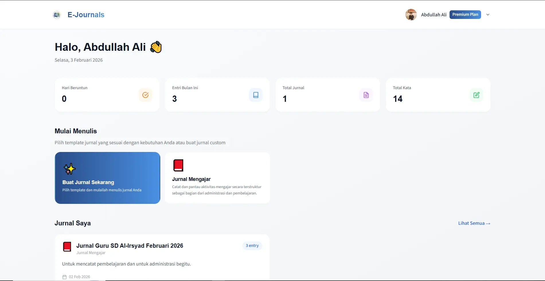 Platform E-Journals untuk guru, murid, dan siapa saja yang ingin mencatat momen berharga setiap hari. Mulai menulis jurnal digital Anda secara gratis!